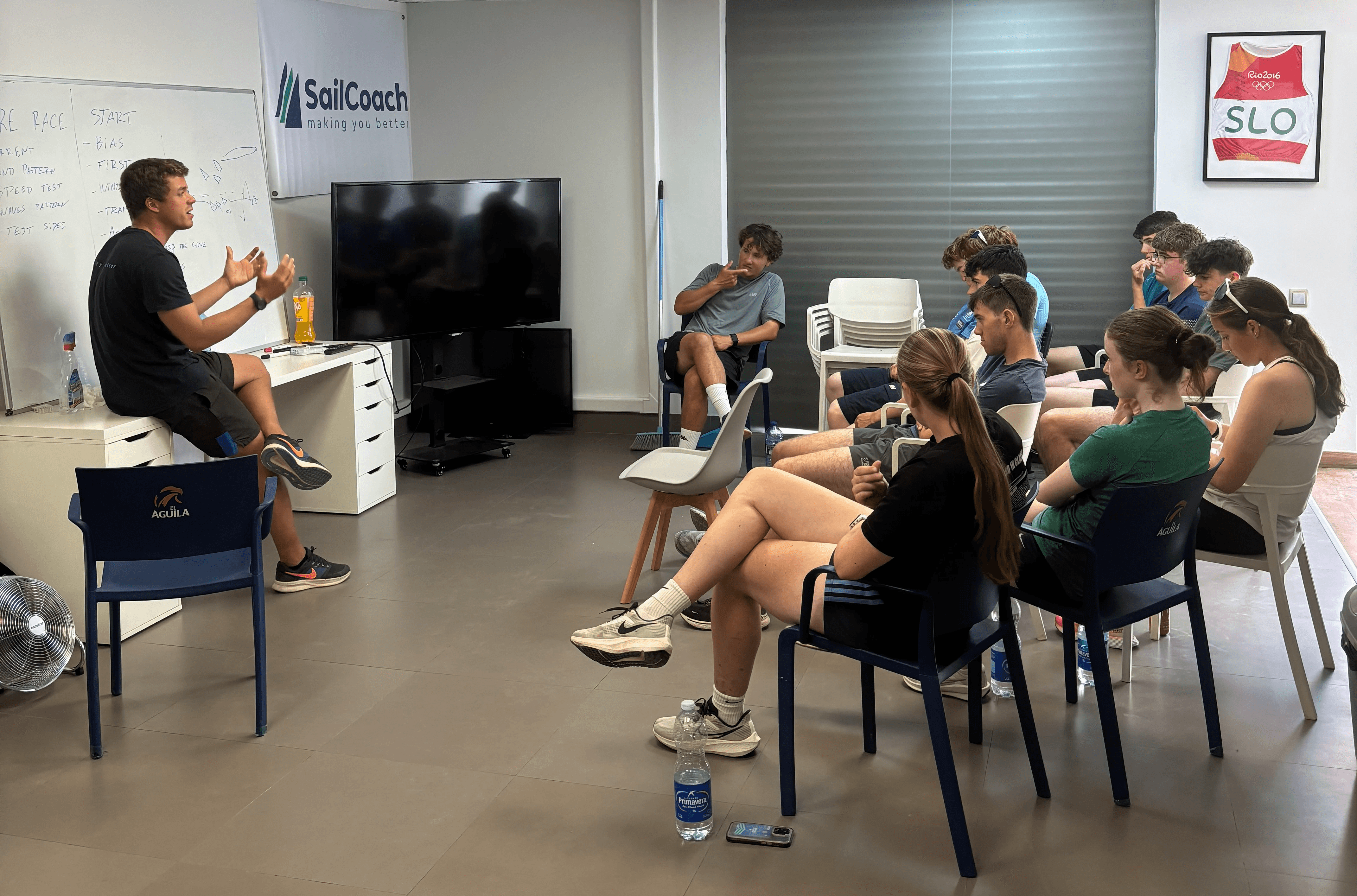 The day begins with a physical training warm-up, led by our strength and conditioning coach. These sessions are tailored to the sailors’ age group and fitness level, with safety always a top priority.